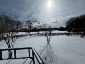 山道を意識することもなく辿り着いたヴィラで、冬の早朝、条件が揃うと空気が凍りつき、きらきらと揺らめく瞬間に立ち会うことができる。